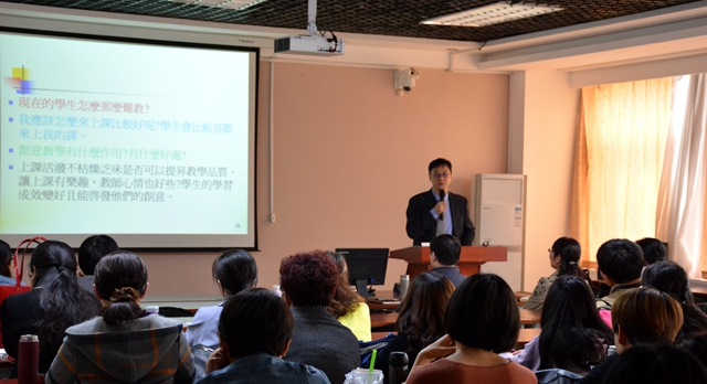 为进一步提升教师教学技能、促进教师成长,近日,外国语学院邀请台南大学教育学院博士生导师张正平教授作了题为“用创意快乐的教学”的主题讲座。 讲座由外国语学院院长赵淑容主持,外国语学院全体教师参加了讲座。
