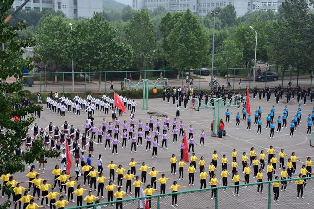 5月17日下午,由学校团委、体育教学部和学生工作部(处)主办,校学生会承办的第七届大学生“阳光课间操”表演赛在篮球场举行,来自体育教学部的专业教师和学生处、团委的工作人员担任评委,由各学院和校学生会同学组成的12支表演队伍参赛。