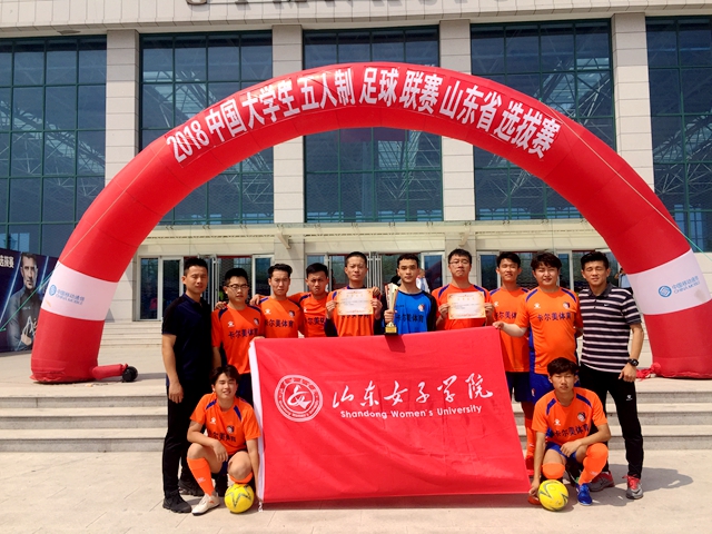 近日,由中国大学生体育协会和山东省学校体育协会主办,山东外事翻译职业学院承办的2018中国大学生男子五人制足球联赛山东省选拔赛在威海落下帷幕,共有来自全省的20多所大学足球队参加了本次赛事。我校派出了由曹斌、李小健老师带领的男子足球队参赛。经过了五天的激烈角逐,最终我校足球队获得了甲组第五名的好成绩。黄克斐、张宇翔两位同学获得优秀运动员称号。