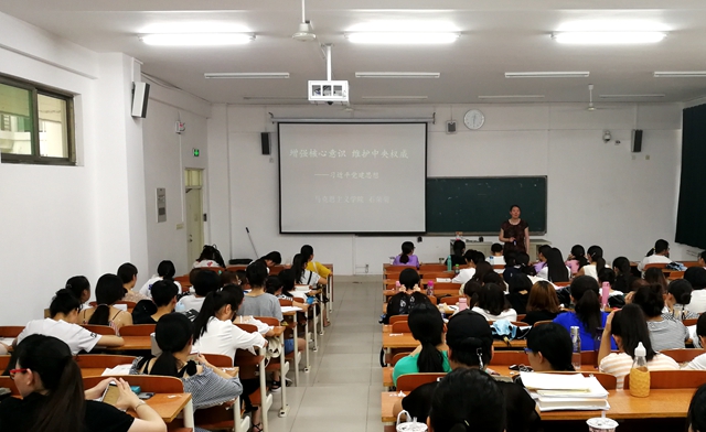 石教授以“增强核心意识,维护中央权威—习近平党建思想”为主题,围绕新时代党的建设的总要求,从“有关政党的几个概念”和“习近平党建思想的内容”两大方面对中国特色社会主义进入新时代这一重要政治判断做出了阐述,深入分析了习近平的党建思想。她结合时事政治将习近平的党建思想解释的通彻易懂,课堂讲解形式新颖,内容充实,学生回应积极,现场气氛热烈。