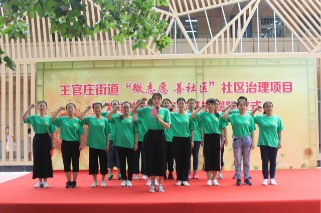 随后,张莹、刘柏共同为山东女子学院大学生实践基地进行揭牌。揭牌过后,社会与法学院“向日葵”志愿服务队三队的队长带领全体志愿者面对社区的居民进行了志愿服务宣誓。本次仪式在志愿者们坚定的宣誓声中划上了圆满的句点。