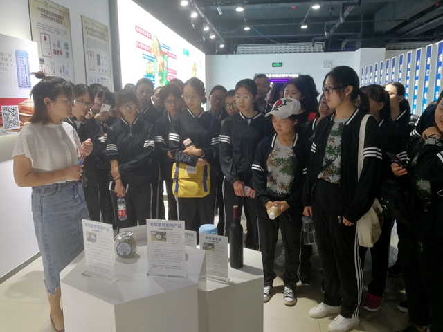 同学们还参观了创新大厦二楼高校展区,对展厅内摆放的科研产品产生了浓厚兴趣,一边听解说,一边提问题。尤其是在VR体验区,同学们对这种新兴科技惊呼不已,纷纷排队体验,感受科技的魅力。