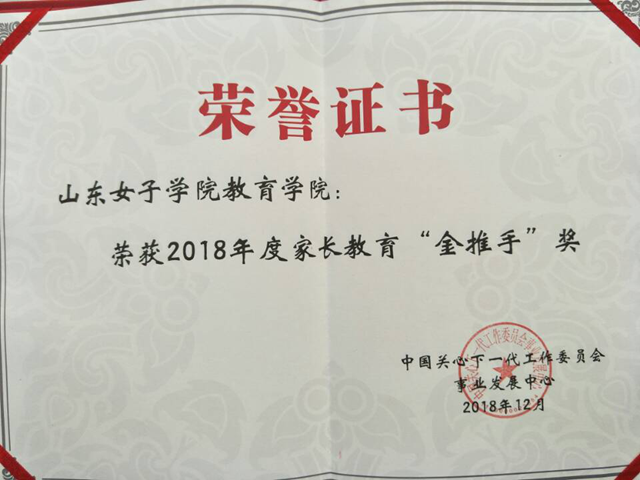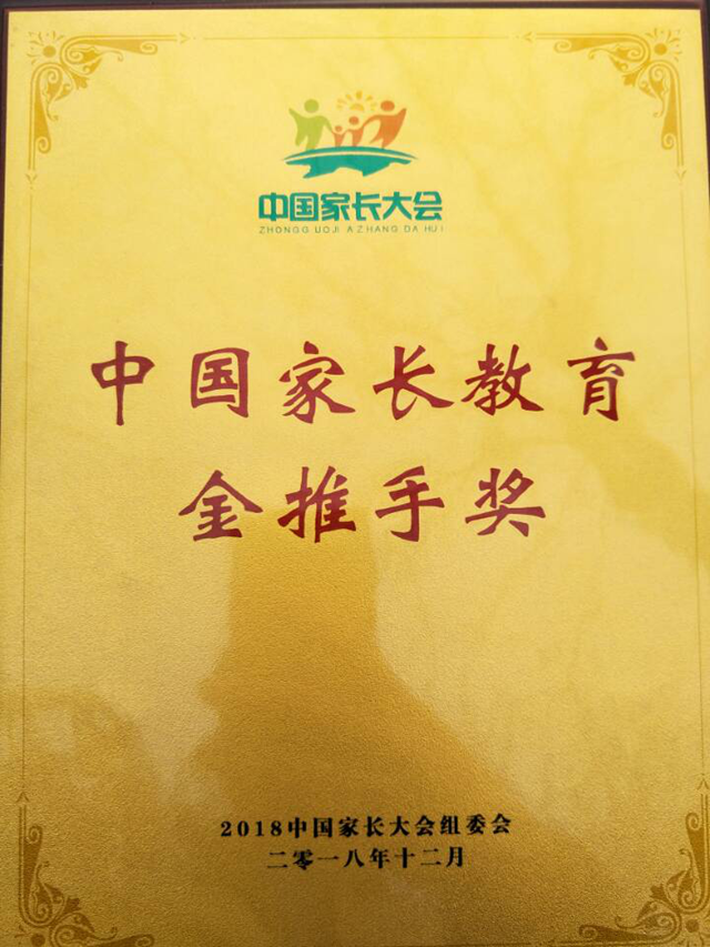 大会向来自全国各地的50个家庭教育先进单位和个人颁发了“2018最美家风奖”“2018中国家长教育·金推手奖”。我校教育学院荣获2018年度中国家长教育“金推手奖”。