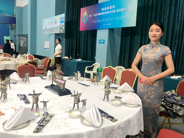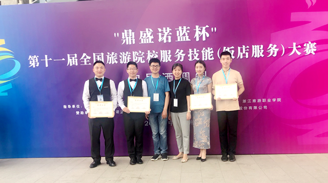 5月16—19日,“鼎盛诺蓝杯”第十一届全国旅游院校服务技能(饭店服务)大赛在浙江旅游职业学院举行。来自全国28个省市,230所院校,共954位选手参赛。我校旅游学院教师刘文彬、王晓伟、于梅好带领2017级旅游管理专业(春季高考本)4名学生参赛,并最终取得三等奖1项,优胜奖3项的好成绩。