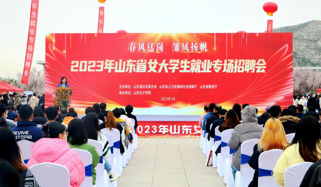 为贯彻落实党中央、国务院“稳就业”“保就业”决策部署,3月16日,“春风送岗 雏凤扬帆”2023年山东省女大学生就业专场招聘会在学校长清校区巾帼广场举行。山东省妇联副主席王洪霞、山东女子学院党委书记吕晓黎、山东省人社厅就业促进处四级调研员张健、省妇联、省人社厅相关处室负责人,“雏凤”巢负责人代表,学校其他领导班子成员、相关职能处室负责人、二级学院负责人,招聘企业代表,毕业生代表近150人参加开幕式。开幕式由学校副校长刘恩允主持。