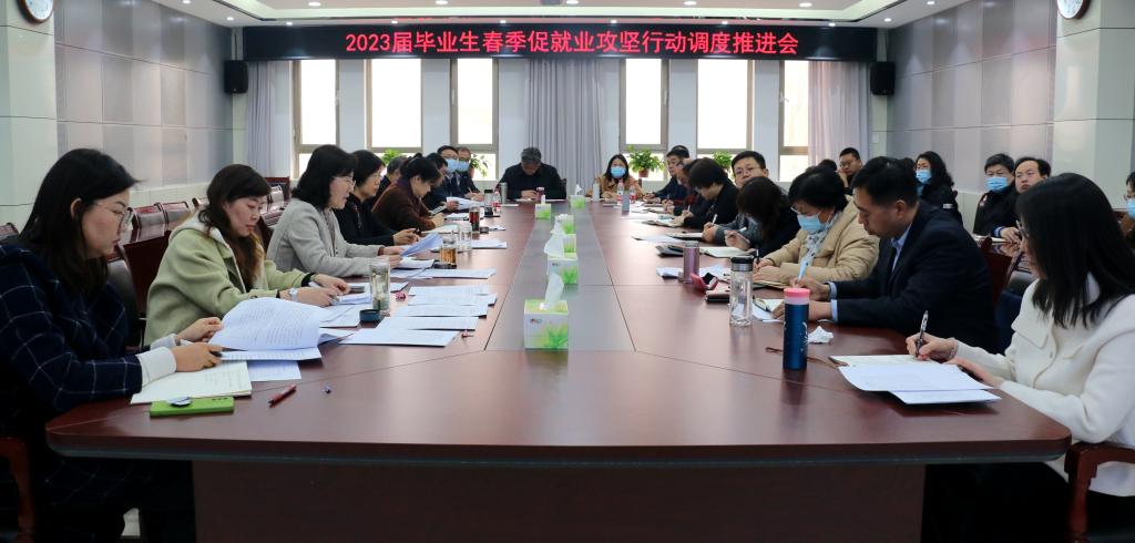 3月24日上午,学校2023届毕业生春季促就业攻坚行动调度推进会在第三会议室召开。学校党委书记吕晓黎,党委副书记、校长李光红、副校长刘恩允出席会议,招生就业处、教务处、学生工作部(处)、团委负责人及各二级学院书记、院长、就业联络员参加会议。会议由刘恩允主持。