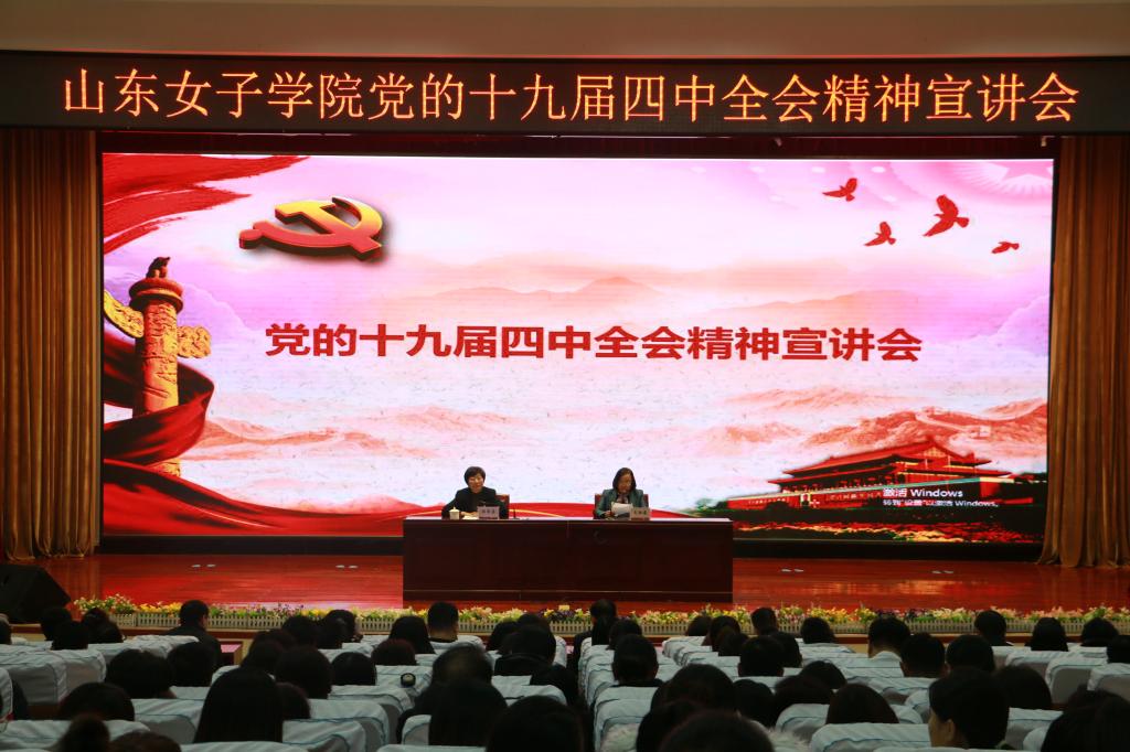 11月28日下午,学校在图书馆报告厅举行党的十九届四中全会精神宣讲会。省属高校学习贯彻党的十九届四中全会精神宣讲团成员、学校党委书记郭翠芬为师生作宣讲报告。学校科级以上干部、教授、思政课教师、辅导员、学生代表共计600余人聆听报告。报告会由党委副书记王淑霞主持。