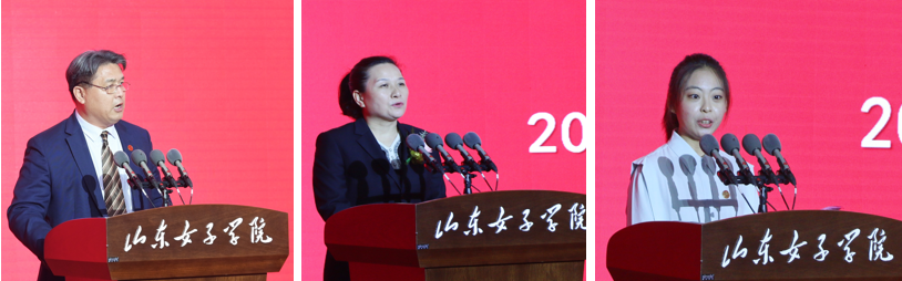 教师代表、全国五一劳动奖章获得者张可成,校友代表、山东观穆律师事务所主任张斌斌,在校生代表、2019级学前教育专业学生徐嘉翎先后发言。他们在感情真挚的发言中,表达了对七十年校庆的热烈祝贺,分享了女院带给他们的成长与收获,表达了对学校未来的美好祝愿。