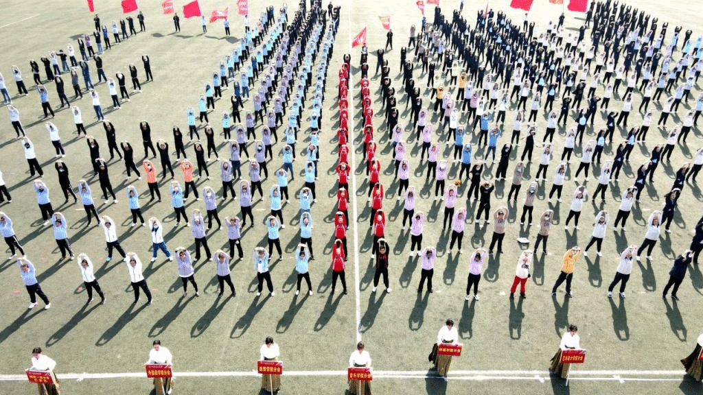 随后,精彩纷呈的舞龙表演、健美操表演、八段锦表演陆续亮相,现场掌声阵阵,气氛热烈。