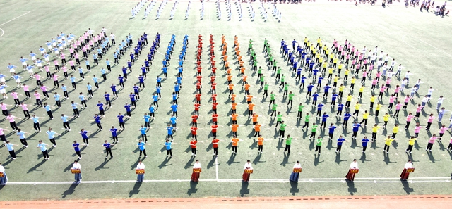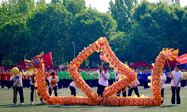 开幕式上,在身着中国传统服饰的引导员引导下,由各学院运动员代表、裁判员代表和教职工代表组成的方队依次入场。