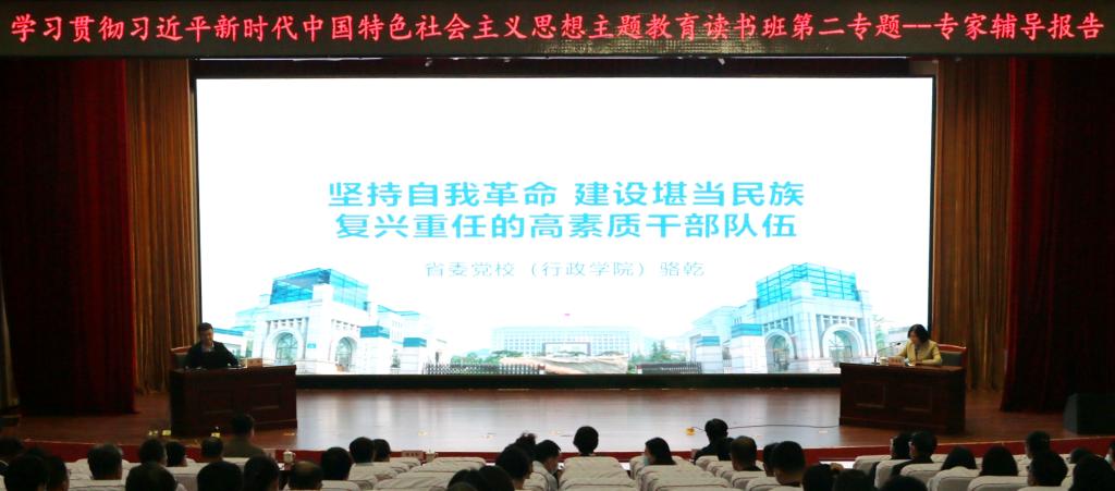 本次读书班邀请中共山东省委党校(山东行政学院)马克思主义学院副院长骆乾作题为《坚持自我革命 建设堪当民族复兴重任的高素质干部队伍》的辅导报告。报告从高素质干部队伍的科学内涵及其主要特质、建设高素质干部队伍的内在逻辑与新挑战、建设高素质干部队伍的着力点与现实路径等三个方面系统阐述了如何推进党的自我革命、如何打造高素质的干部队伍,特别提出要注重培养选拔政治过硬、对党忠诚,业务精通、本领高强,敢于担当、勇于负责,敢于斗争、善于斗争,作风优良、清正廉洁的干部,有助于广大党员干部深刻领会本专题的学习内容。