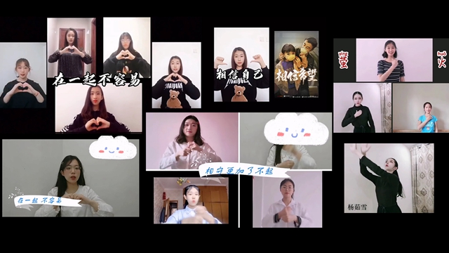 视频中,教育学院《为爱努力,永不放弃》的作品用丰富的手势表现出青年人的爱国情怀,传递出对于抗疫人员祝福与敬佩之情。社法学院“梦之翼”手舞团作品《不放弃》,不仅表达了学生对于战疫胜利的信心,更体现了全国上下万众一心、共克时艰的团结精神。《凛冬散去,星河长明》与《黎明的曙光》,是女院学子对于战疫成功春回大地的希冀,《最美天使》、《平凡天使》是青年学子对无私奉献,承担国家责任的逆行者们的讴歌。同学们以艺术振奋精神,用作品温暖人心,得到了评委们的一致好评。本次活动获得了师生的广泛关注,6000余名观众关注作品并投票。