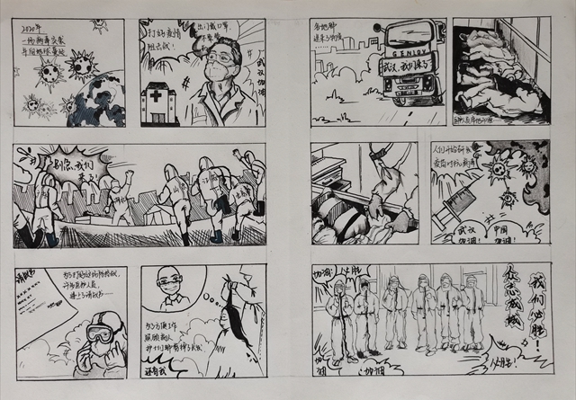本次作品展是文化艺术节和返校学生“开学第一课”第二课堂教育中的重要内容。参展作品围绕战疫过程中展现出的中国精神以及疫情防护知识等进行创作,从身边的所见、所闻和自身的所感、所思、所想出发,用不同的艺术的表现形式,讴歌新时代的逆行者、科普防疫知识、传达疫情防控工作要求,弘扬正气、凝聚力量、传递正能量。同学们创作的主题作品有温度、有力量、有希望,既有灵趣创作的卡通漫画,又有感人肺腑的故事情节,还有生动刻画的精美手绘。参加“开学第一课”的同学们驻足作品前,纷纷表示,看到身边同学们创作的优秀作品,带给自己不一样的体会,科学防疫人人有责。经过评审团公平公正、严格专业的评选,共评出一等奖8名,二等奖15名,三等奖28名,以及优秀奖若干。