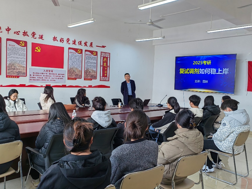 为提升学生考研复试成功率,3月6日,经济学院(科创金融学院)在求真楼202举办了2025届考研复试指导会。本次会议特邀高联集团考研指导专家范林主讲,学院党委副书记赵晓琳主持,2025届全体考研过线同学参会。