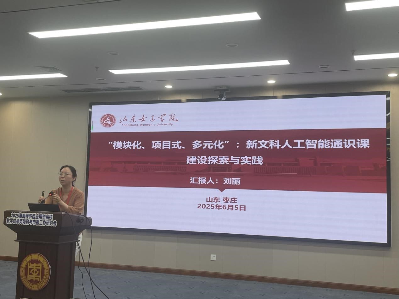 会上成立淮海经济区应用型大学教育教学创新联盟。来自省内外高校的专家学者在本次会议中交流教育教学改革创新实践经验。数据科学与计算机学院教师刘丽在分论坛中作了题为“‘模块化、项目式、多元化’:新文科人工智能通识课建设探索与实践”的分享。