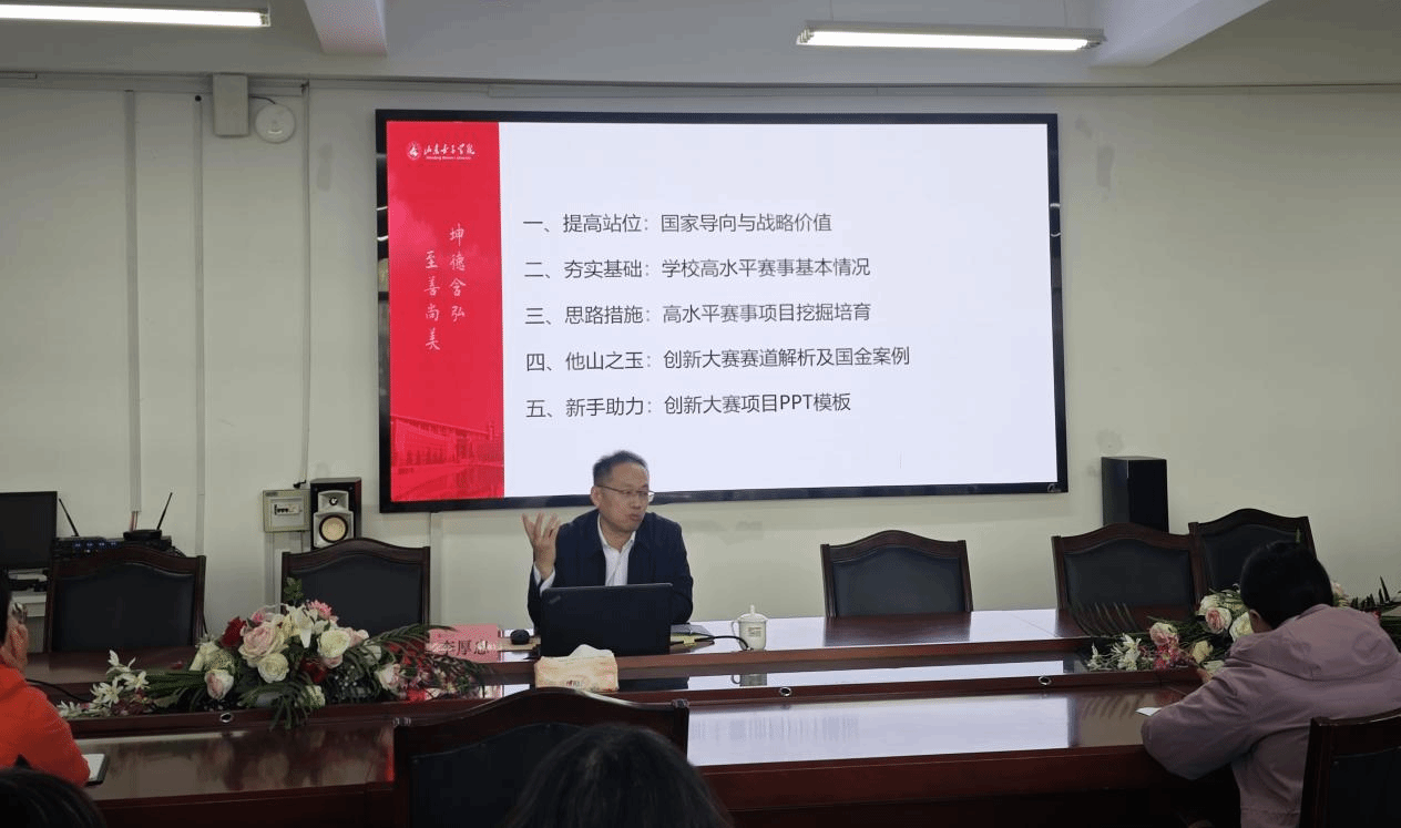 为深入贯彻落实国家明升体育:创新创业教育的战略部署,提升我院师生参与高水平赛事的竞争力,12月18日,旅游学院举办“2026年高水平赛事宣讲会”。本次宣讲会特邀学校创新创业学院院长李厚忠担任主讲,学院全体教师参会学习。