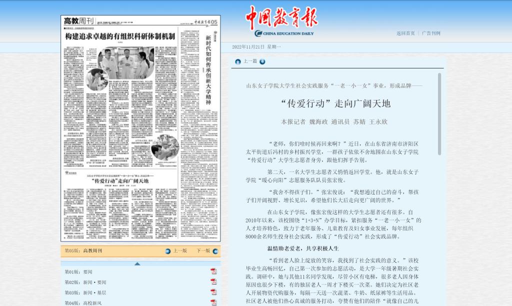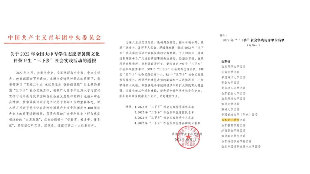 (二)提升思政育人“话语权”。设计开展万名女大学生共读《习近平走进百姓家》活动,推出领读视频10期,阅读量超2.3万,中国妇女报刊登学校做法案例;总结阳光课间操10年成果,拍摄健身气功《八段锦》示范视频,中国教育报视频号推出5期合集,获得较好的社会反响。学校团委获共青团山东省委2022年度工作通报表扬,在2023年年中打擂中获得优秀等次。